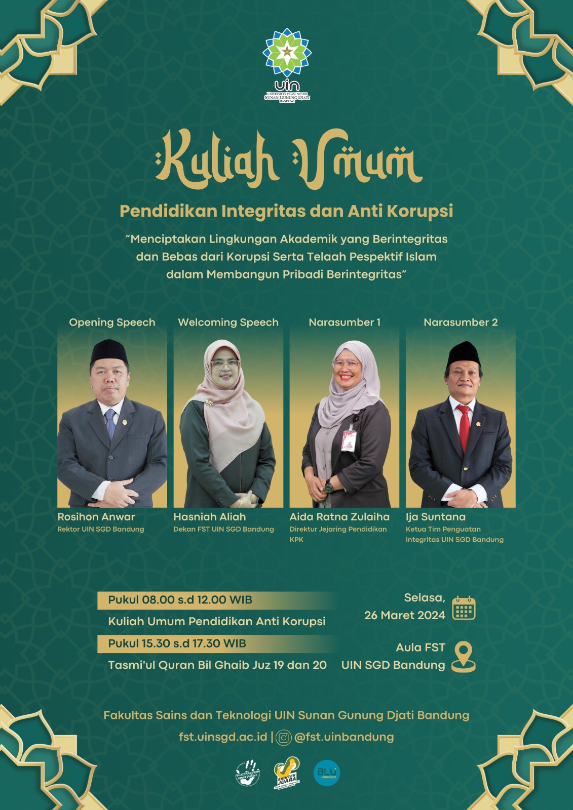 Fakultas Sains dan Teknologi (FST) Universitas Islam Negeri (UIN) Bandung menggelar Kuliah Umum Pendidikan Integritas dan Antikorupsi dengan tema : “Menciptakan Lingkungan Akademik yang Berintegritas dan Bebas dari Korupsi Serta […]